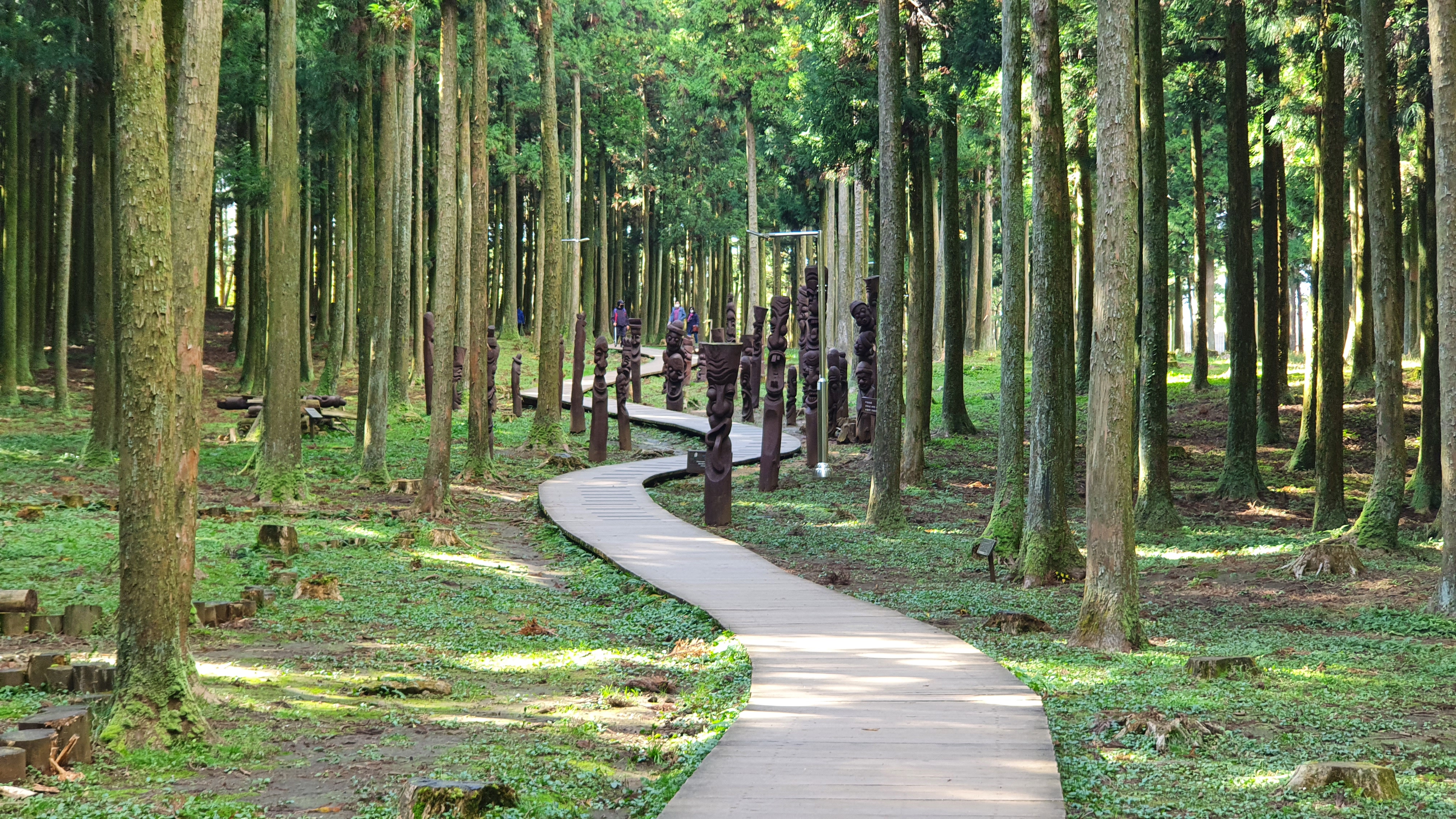 길가에 보이는 장승들은 모두 바람에 쓰러진 삼나무를 깍아서 만든 작품들이라고 합니다.