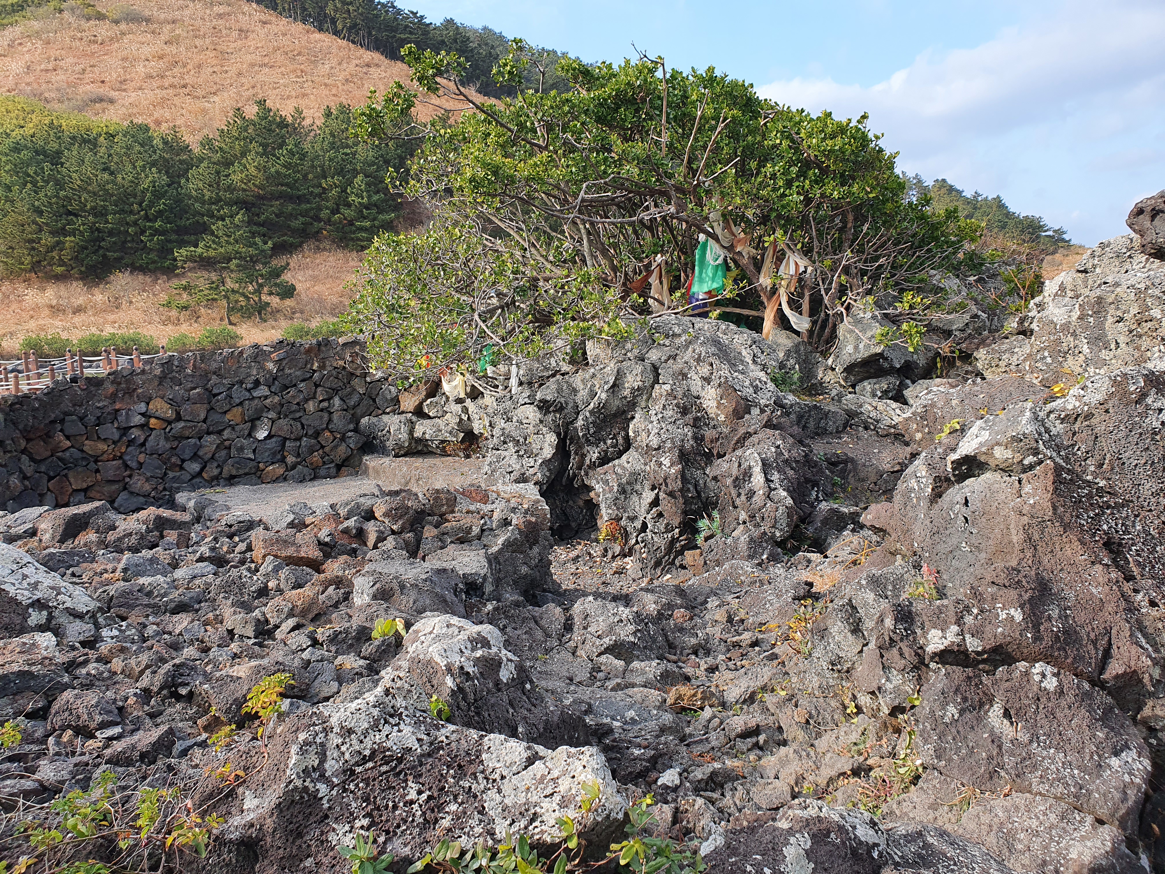 용암이 만든 대지위에 생긴 염습지입니다. 비양도의 심장이라고도 불리는데 이곳에는 멸종위기에 있는 황근나무를 비롯 다른 지역에서 보기 힘든 251종의 식물이 서식하고 있다고 합니다.
