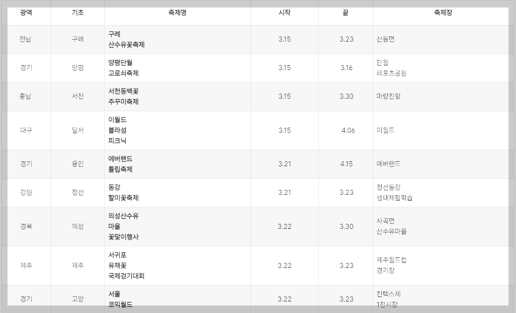 2025년 3월 전국 축제 정보는 아래 사진으로 확인해 보세요!