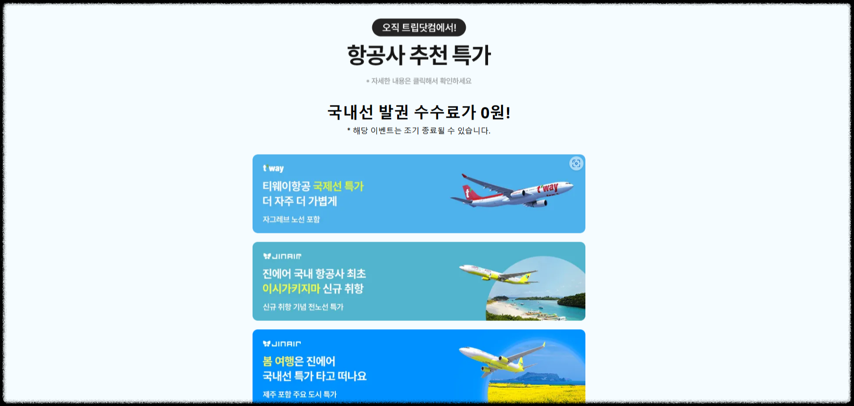 링크에 들어가면 다양한 항공사의 추천 특가를 확인할 수 있습니다.