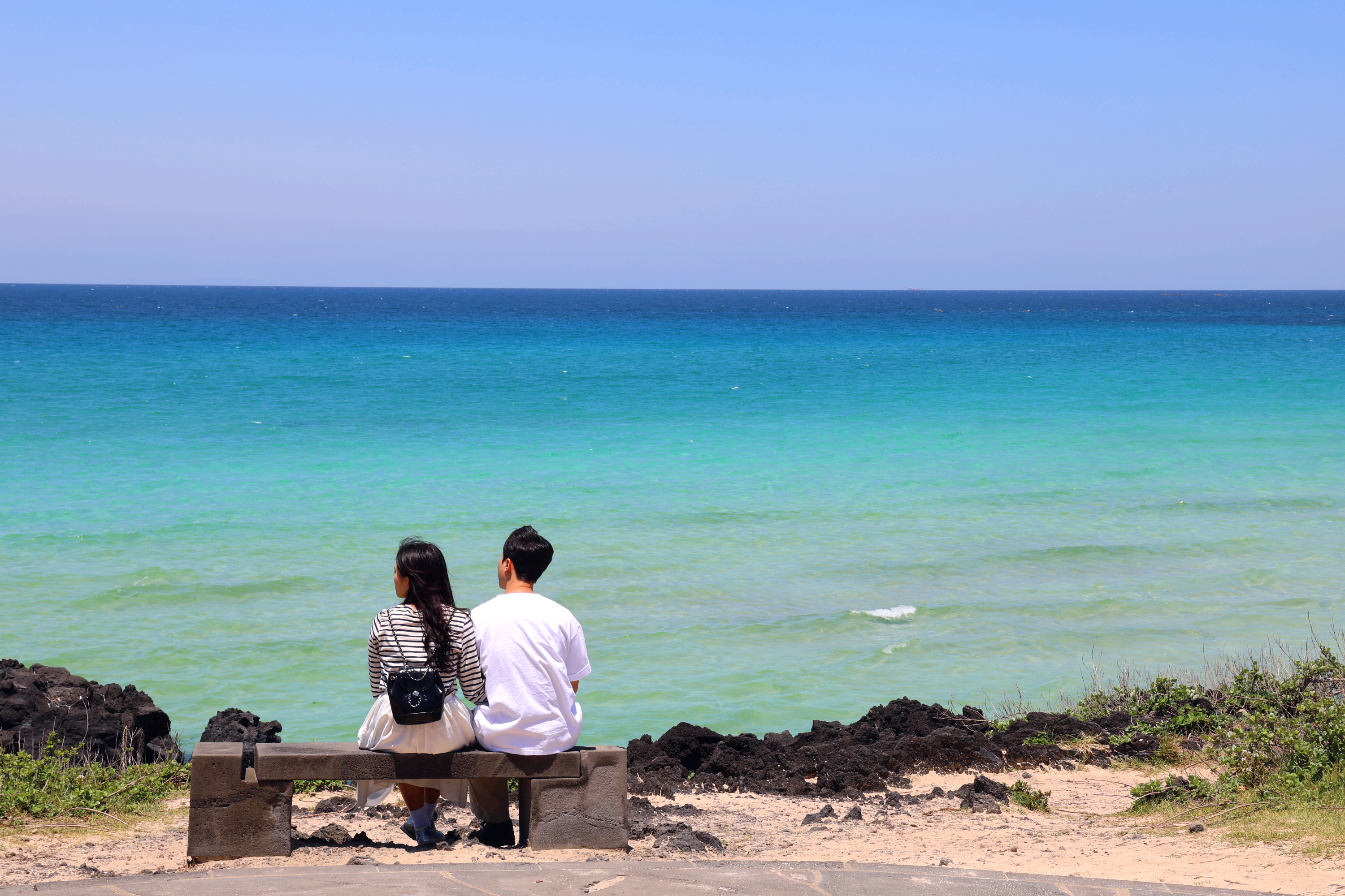 에메랄드 빛 바다와 바로 옆 서우봉이 매력적인 함덕해수욕장! 해가 지는 바닷가는 더욱 반짝반짝 빛난답니다. 함덕으로 마지막까지 힐링!
