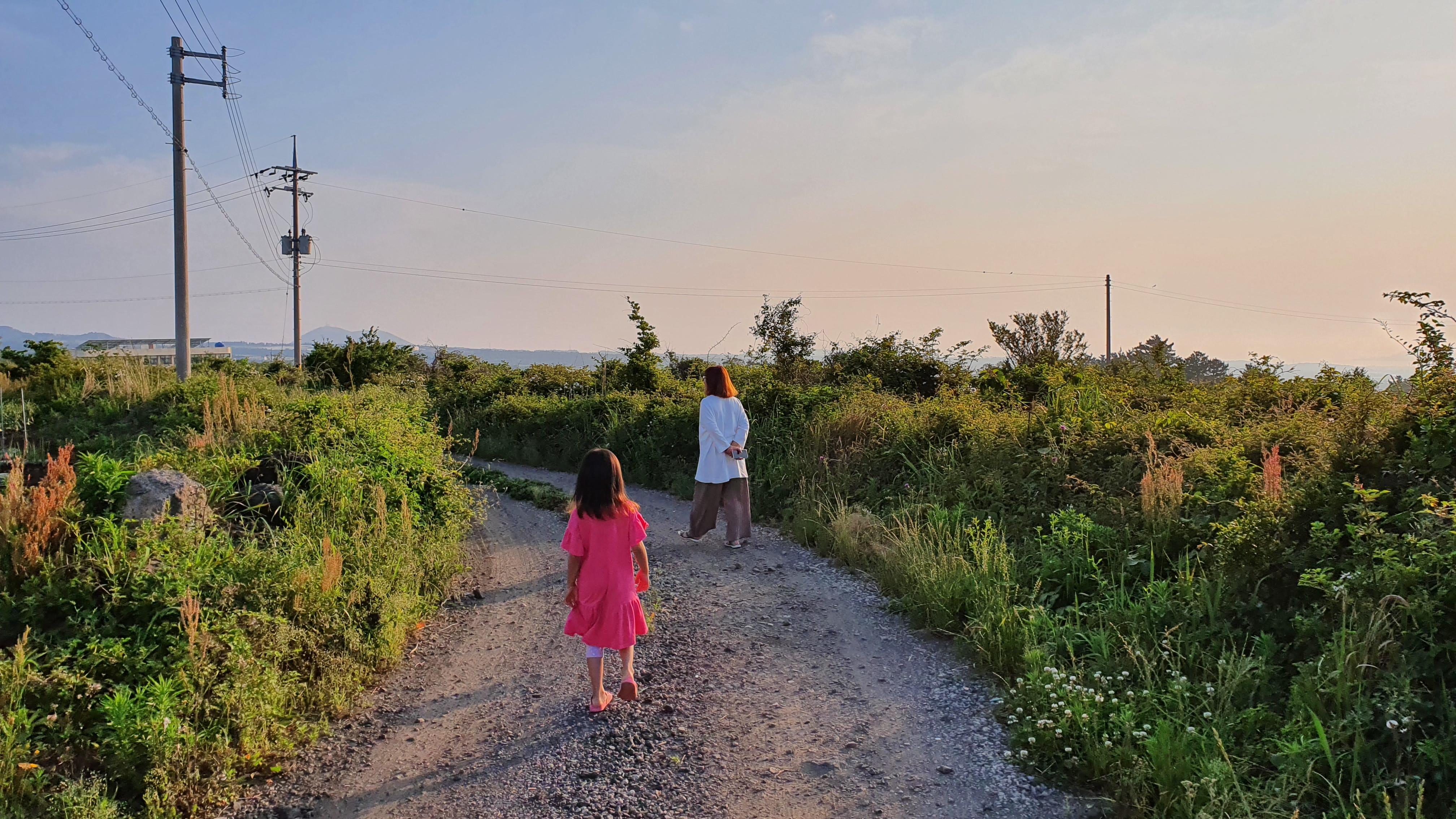 마을과는 좀 동떨어진 산간에 위치해 있어서, 대문밖을 나가면 시골길도 걸어볼수가 있었는데, 이런 시골길역시 딸아이는 처음 걸어보는 풍경이라 여기저기 신기한듯 구경하며 걷던기억이 있습니다. 저희 부부도 지금은 제주도심 오피스텔에 살지만 4년안에 시골 마당집!!을 마련하는 꿈을 가져봅니다.