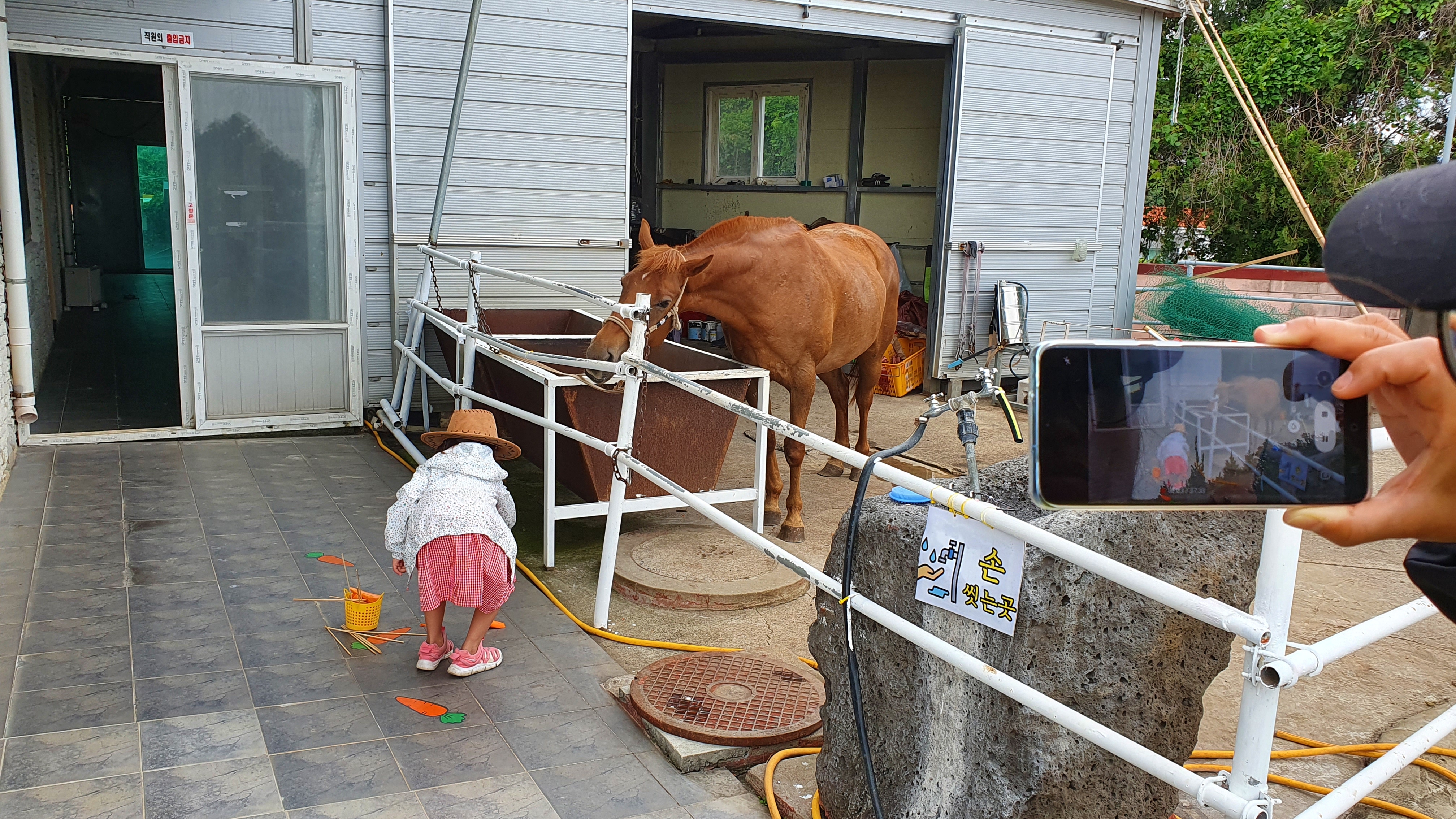 중문 승마공원에서는 아내와 딸아이가 승마를 했는데 여기서는 말을탈때 직원분이 말을 끌어주는것이 아니라... 혼자탄다는점!! 직원분이 젤앞에서 말을 타고 그뒤를 딸아이와 아내가 따라가는 방식이였는데, 아내는 좀 무서워했지만 오히려 딸아이는 더 재미있어했다는 사실!!