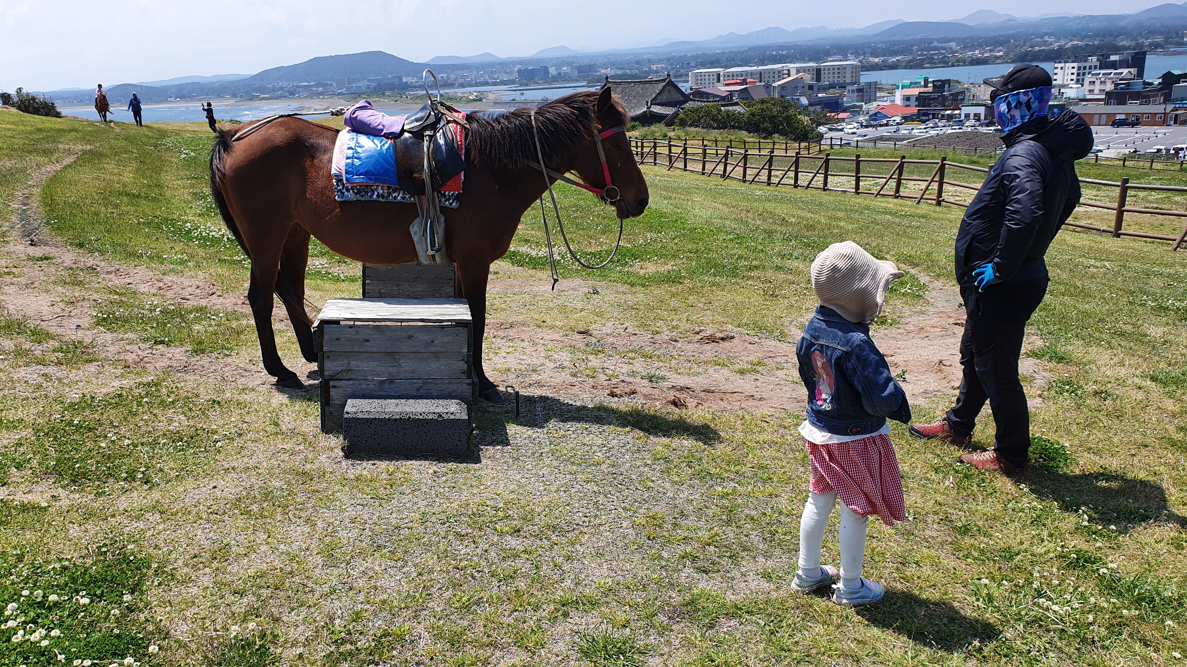 요기 일출봉 앞마당같은 잔디밭을 한바퀴 도는데 탑승료??는 5천원 이었습니다. 지금 생각해보면 말을 처음타보는 딸아이에게 딱 적당한 코스였던것 같습니다.