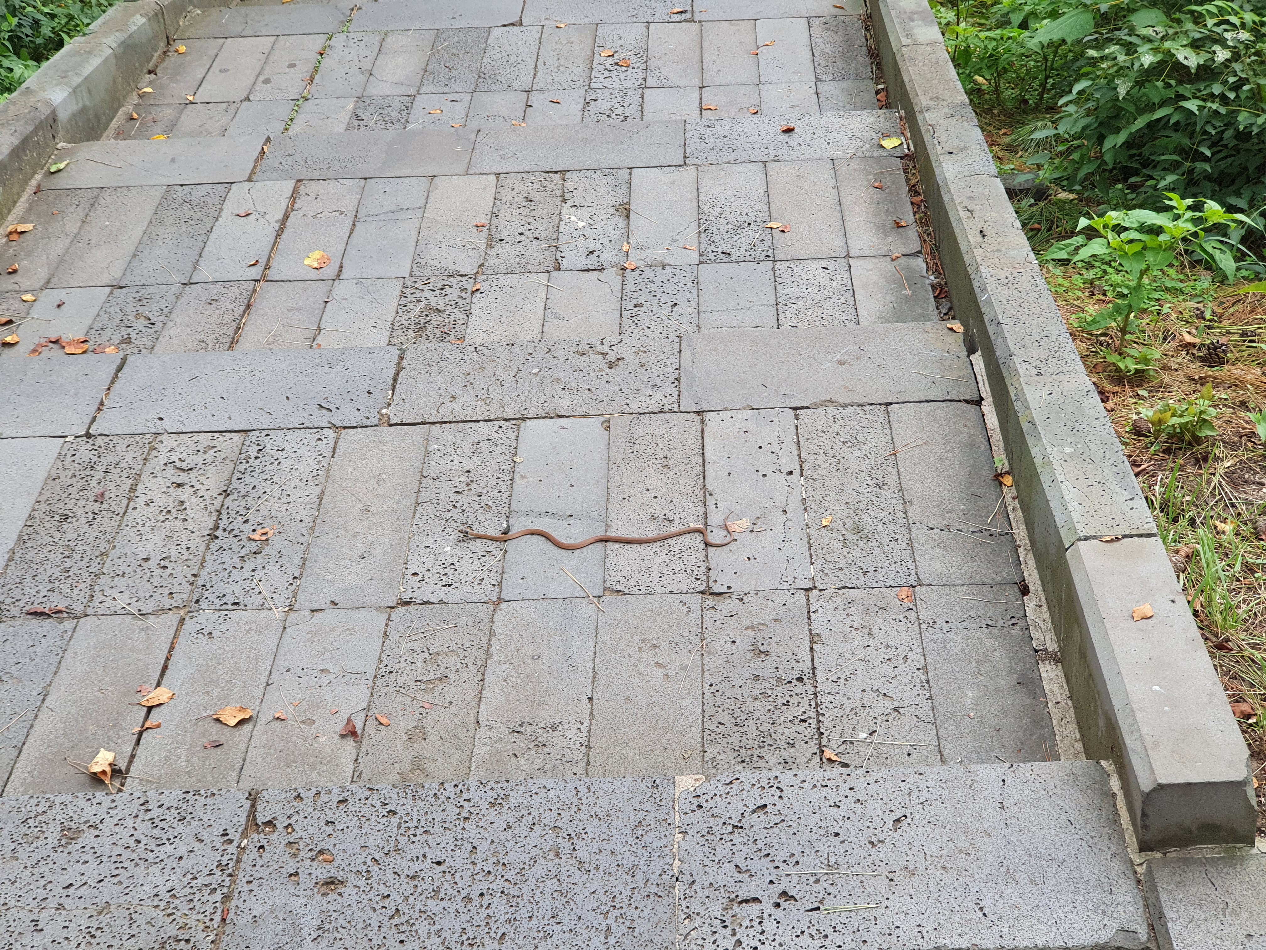 헉!! 뱀한마리가 계단을 가로질러갑니다 ;;;저는 처음에 아주 긴 지렁이인줄 알았는데 자세히 보니 실뱀???인듯... 얇고 사납게 생긴 뱀이 지나가는 광경을 목격합니다.